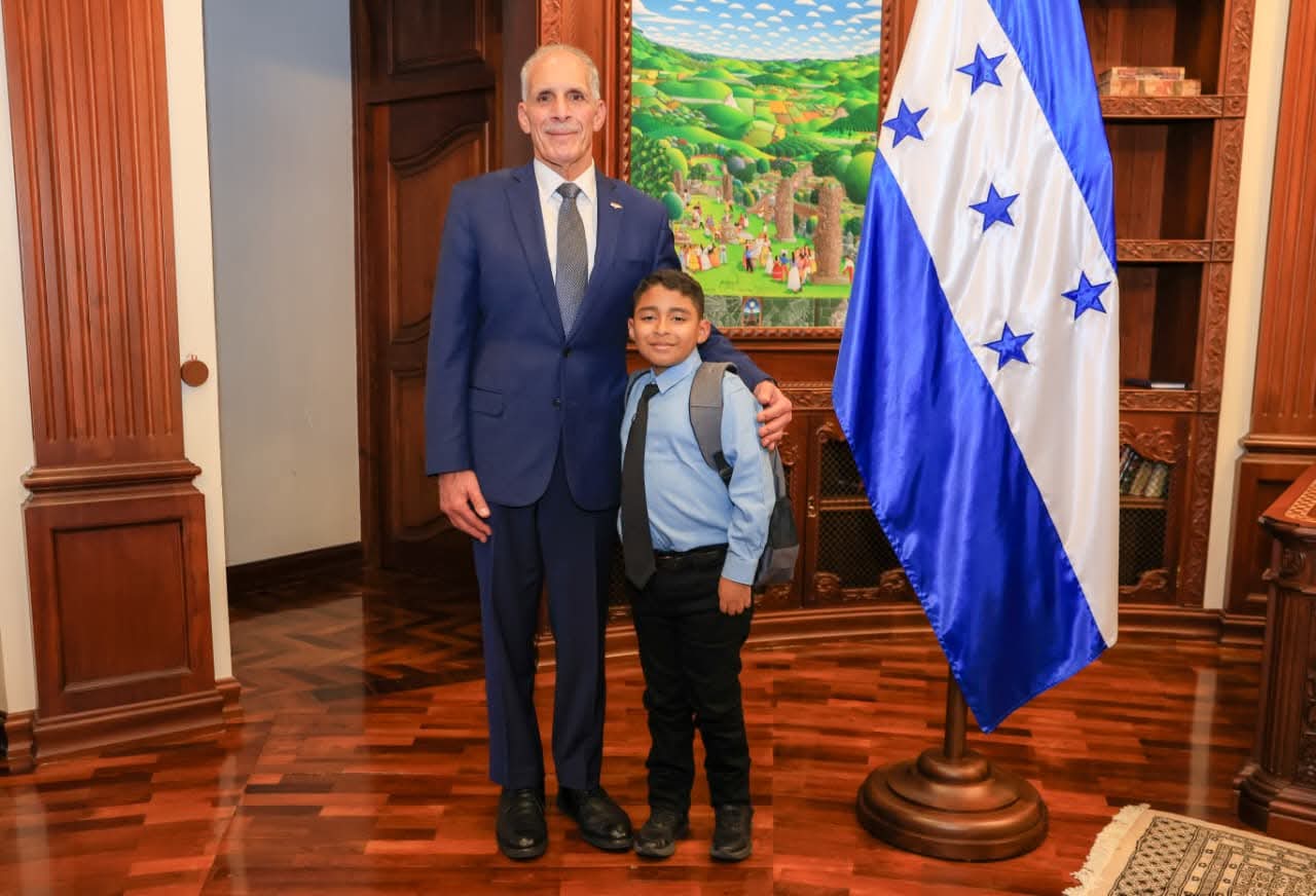 El mandatario reconoció su talento y lo motivó a continuar su formación, destacando que el desarrollo científico y el impulso a las nuevas generaciones son fundamentales para el futuro de Honduras.
