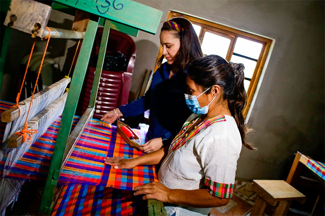 Hace unas semanas, Ana de Hernández visitó este telar en Intibucá y pudo apreciar a los artesanos lencas elaborando la tela para su vestido e incluso los acompañó en parte del proceso.