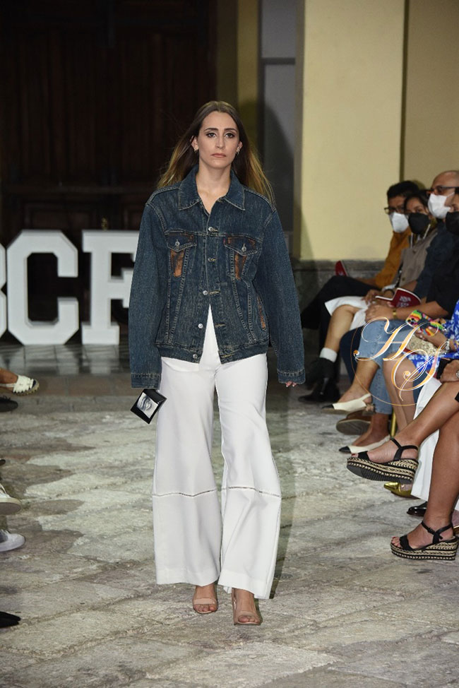Desde Nicaragua Diseña, Blanca Moreno se presenta con una propuesta upcycle de crear prendas utilizando como base el denim. La estética también brinda esa sensación western del viejo oeste y proporcionando una nueva idea moderna de este estilo.