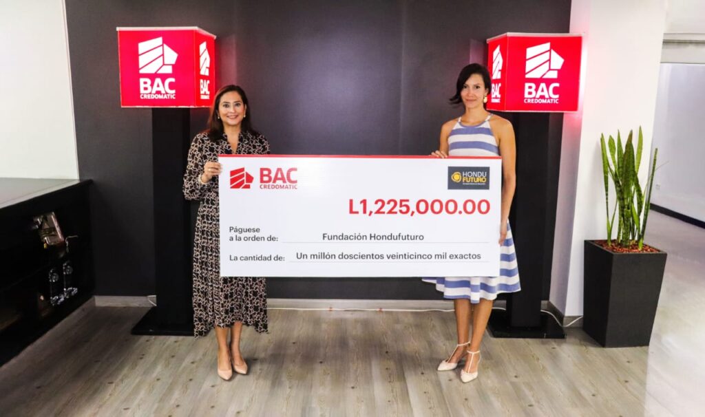 Honduras. Valeria Rios, Vicepresidente de Mercadeo y Comunicación de BAC Credomatic Honduras realizó la entrega, por séptimo año consecutivo, de un patrocinio de L.1,225,000.00 a Fabiola Ráquel, Directora Ejecutiva de la Fundación HonduFuturo, reafirmando su compromiso de por mejorar la calidad de vida de los hondureños. HonduFuturo promueve, orienta y financía a hondureños de excelencia académica con deseos de realizar estudios de posgrado en el extranjero.