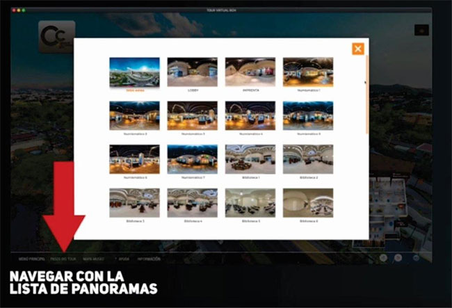 En este sentido, esta gira virtual permitirá una inigualable experiencia por medio de fotografías de 360°, audios explicativos de las salas y de objetos destacados, apreciándose obras de reconocidos artistas de la pintura y plástica nacional en nuestra Pinacoteca, así como de una gran colección literaria de más de 9,000 obras especializada en temas de banca, economía, finanzas y contabilidad en la Biblioteca.