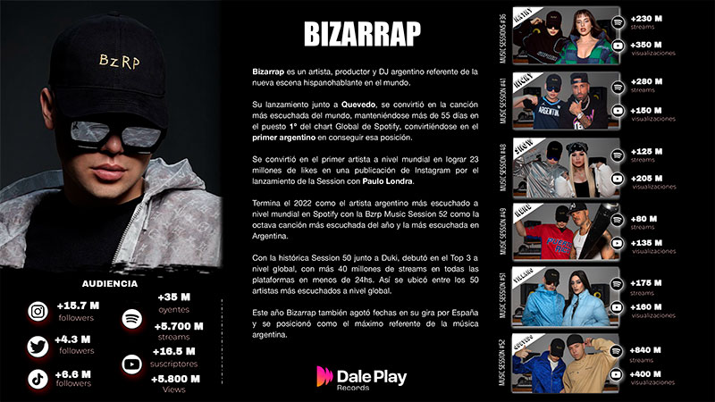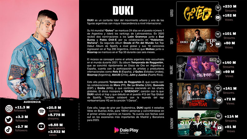 La fusión de los argentinos Bizarrap y Duki comienza en el 2017, mientras ambos despegaban sus carreras musicales, en ese año, Bizarrap realiza un remix del tema “No vendo Trap” un tema de Duki que alcanzó más de 15 millones de reproducciones en su primera semana.