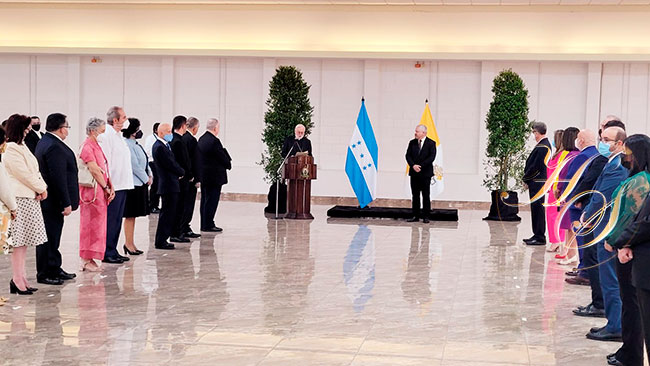 Honduras se precia de tener unas excelentes relaciones con la Santa Sede. El Gobierno le extiende la más cálida bienvenida, y desea que su visita a Honduras contribuya a afianzar nuestro relacionamiento con la Santa Sede, pues la presencia bienhechora del Vaticano, a través de la Nunciatura Apostólica y del Nuncio Monseñor Gábor Pinter, es apreciada, respetada y admirada por la inmensa mayoría del pueblo hondureño”, opinó el Canciller Reina.