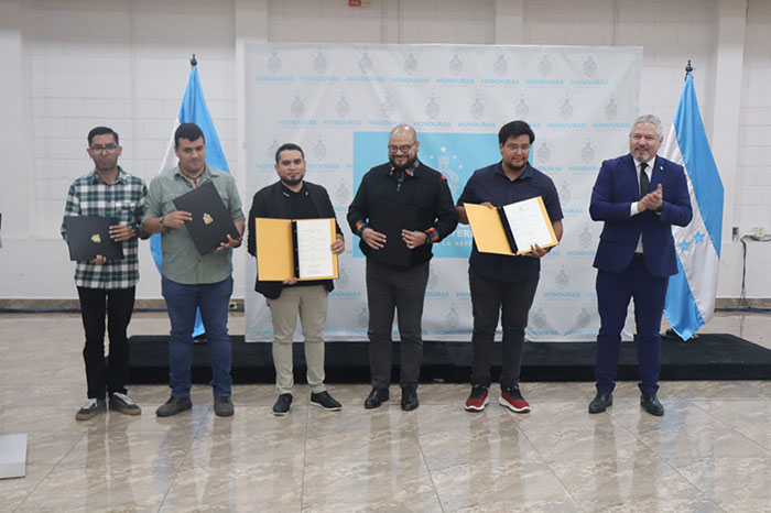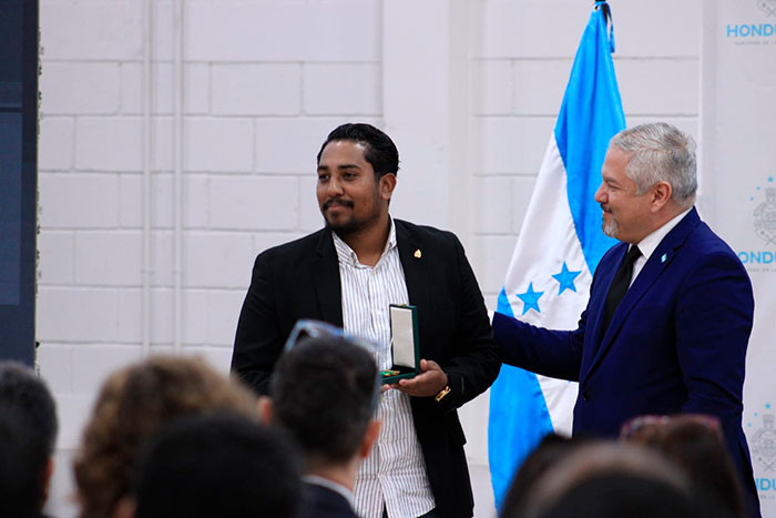 La ceremonia continuó con la lectura del contenido de los acuerdos por parte del Director General de Asuntos Legales, Emilson Durón y posteriormente la entrega de los galardones a cada homenajeado por el Canciller Reina.
