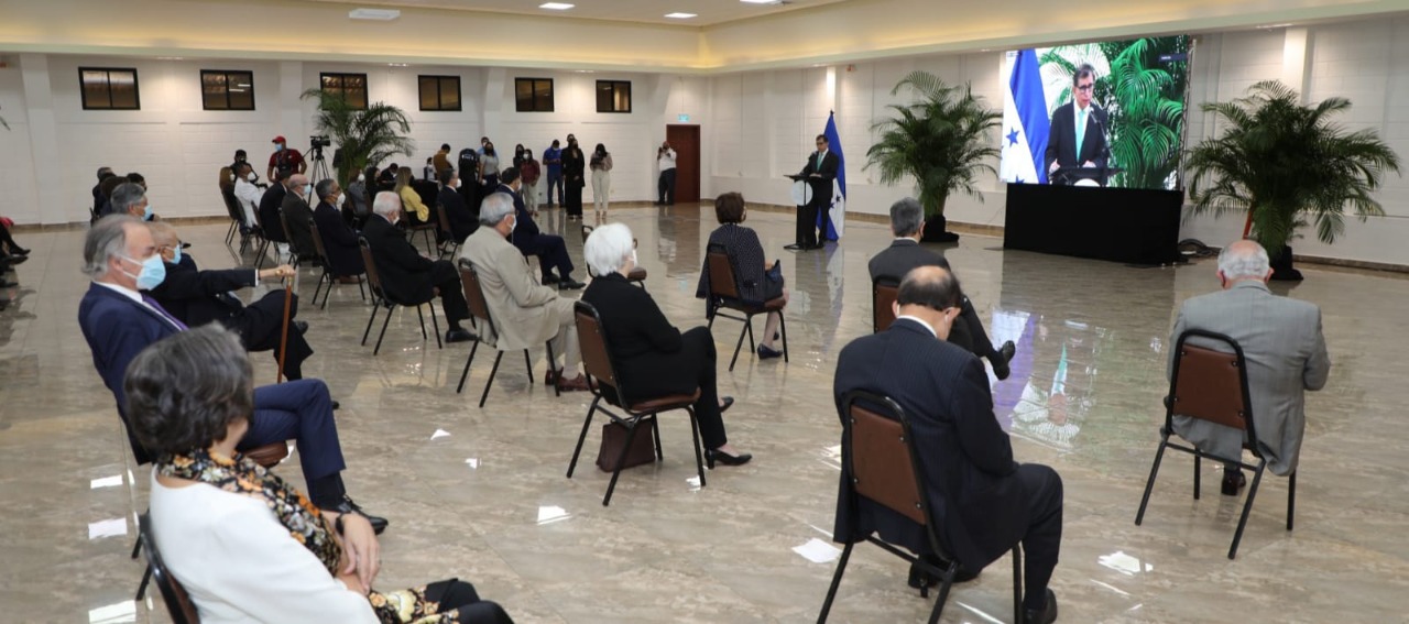 Tegucigalpa, 17 de enero de 2022. En reconocimiento a los valiosos aportes al país durante su destacada y amplia trayectoria profesional y como diplomático, la Cancillería rindió hoy un homenaje al embajador emérito Carlos López Contreras.
