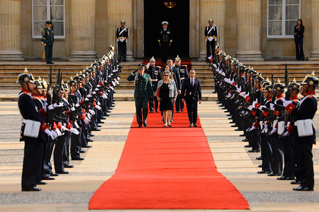 La ceremonia se realizó en la sede del gobierno colombiano el Palacio Nariño, al compás de la Banda de Musical de la guardia de honor presidencial en la que se rindieron honores a la nueva embajadora hondureña.