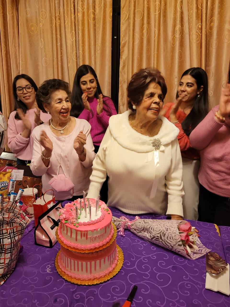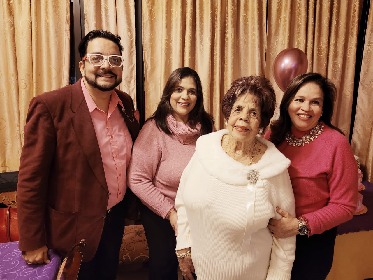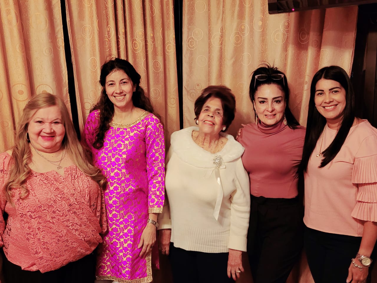 Los presentes asistieron vistiendo tonalidades rosa a petición de los organizadores de la celebración, sus hijos Celeste de Rojas, Claudia Raudales y Enrique Oyuela.