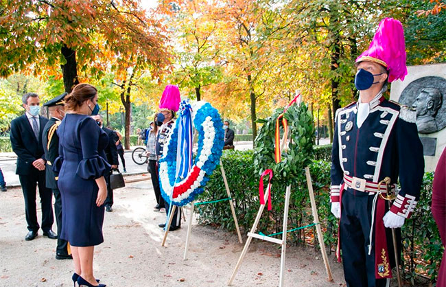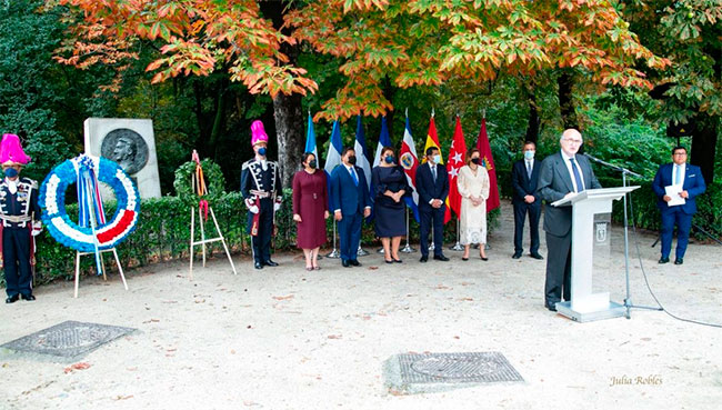 La ofrenda floral se colocó, el pasado 15 de septiembre, frente al monumento del general Francisco Morazán que está ubicado en el parque del Buen Retiro, donde la Banda Municipal de Madrid interpretó el Himno Nacional de Honduras.