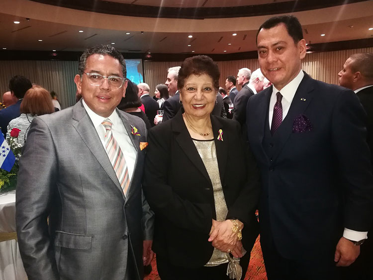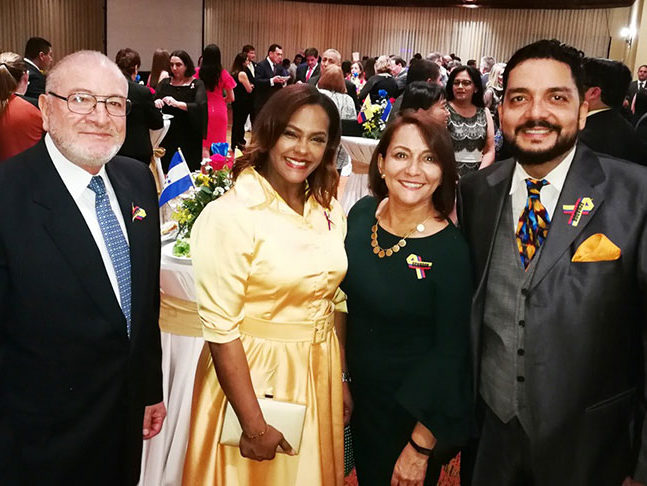 El festejo de aniversario de independencia se realizó en el salón Viena del hotel Clarión de Tegucigalpa, donde el embajador junto a delegación de la sede diplomática, recibieron a cada uno de importantes a los invitados.