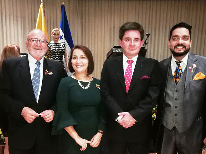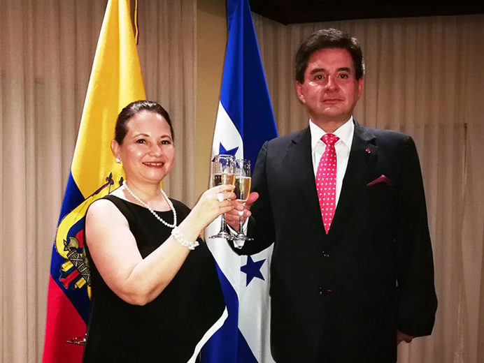 Vasco Viteri junto a la vice canciller Norma Cerrato Sabillon, dirigieron el brindis en la celebración de “210 años de vida independencia de Ecuador”.