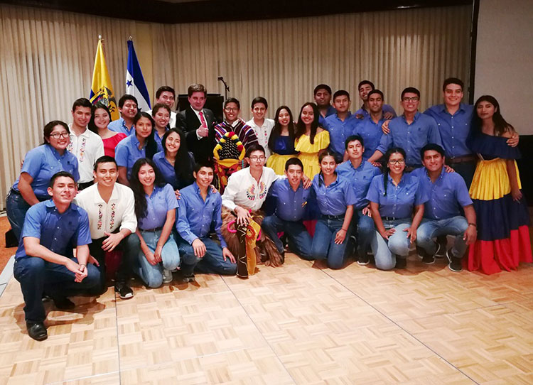 En el evento estudiantes de origen ecuatoriano de la Escuela Agrícola Zamorano, como bienvenida ofrecieron un espectáculo folklórico de baile y música regional, que fue del agrado de todos los presentes.