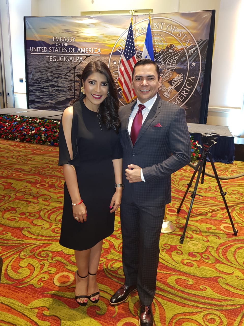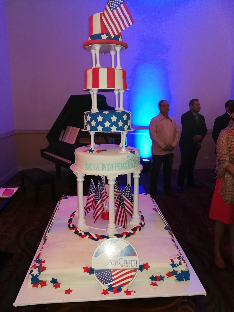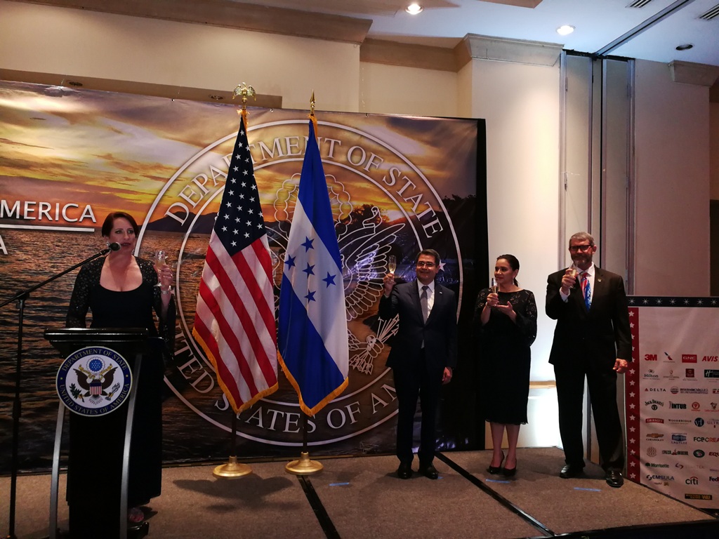 La encargada de negocios de la embajada de los Estados Unidos de América Heide Bronke Fulton y su esposo James Fulton, ofrecieron una recepción por el 242 aniversario de la independencia de los Estados Unidos de América, y tuvo lugar en todas las áreas sociales del hotel Real InterContinental  de Tegucigalpa.
