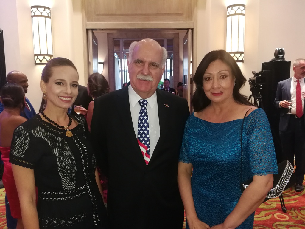 La tradicional festividad, decorada con flores con los colores distintivos de la nación del norte – rojo, azul y blanco – igualmente con las banderas de los 52 estados de la unión americana, asistieron reconocidas personalidades del  gobierno central, cuerpo diplomático, empresarial y social del país, los que disfrutaron de la especial celebración de aniversario.