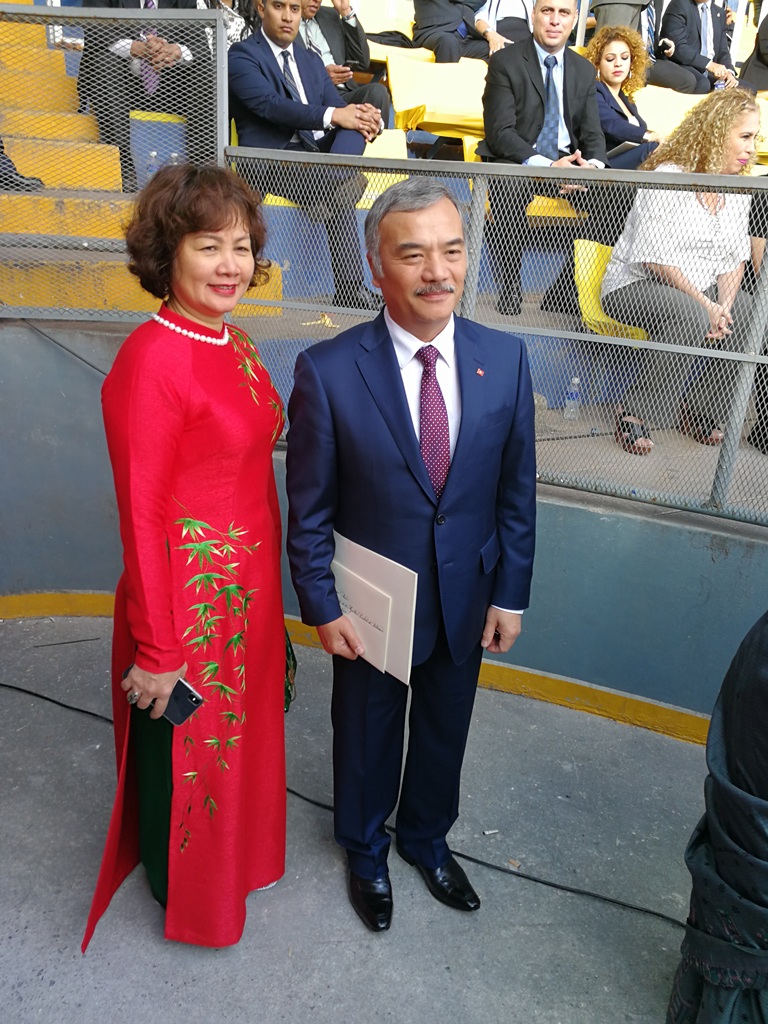 Muchos invitados entre representantes del cuerpo diplomático, empresarios, conocidas caras de la sociedad hondureña, familiares y amigos, entre otros presentes, se reunieron  en el estadio nacional “Tiburcio Carias Andino”  ser testigos de la investidura para un segundo período del abogado Juan Orlando Hernández, como presidente de Honduras.