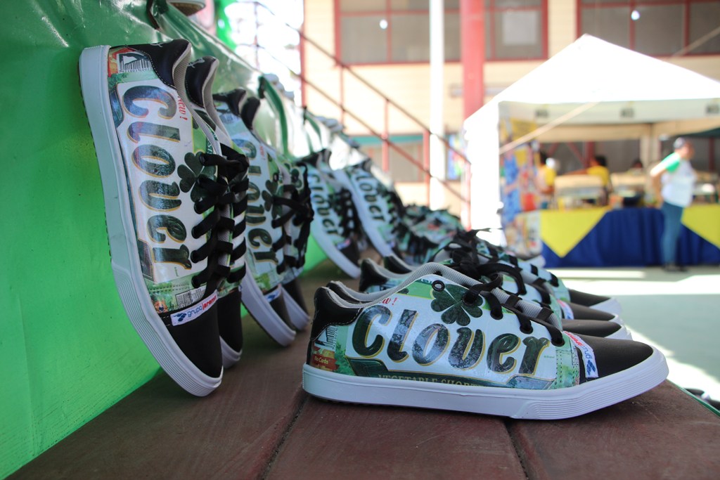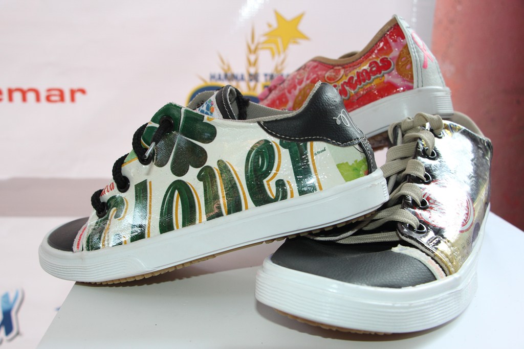 5. Posteriormente estos empaques son entregados al departamento de RSE de Grupo Jaremar para la elaboración y diseño de los ECO TENIS a través de una microempresa llamada Vos Honduras, quienes utilizan cualquier tipo de material reciclable para la elaboración de los mismos: etiqueta, empaque, cartón, plástico, entre otros. Adicional se pueden utilizar para elaborar mochilas y cartucheras con lonas de vallas publicitarias.
