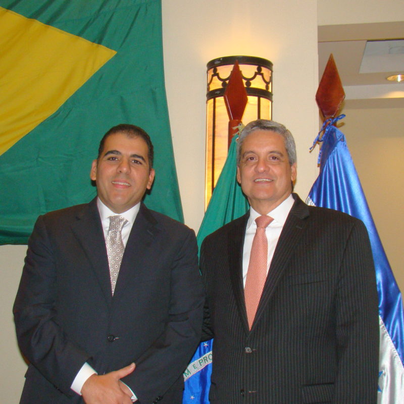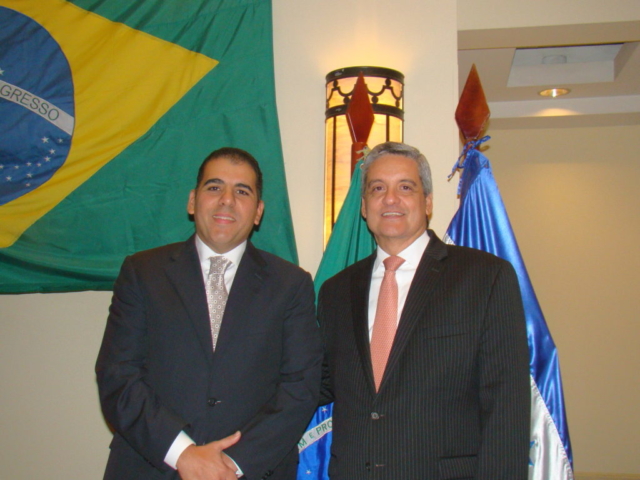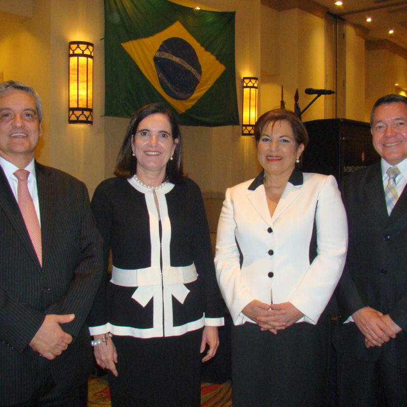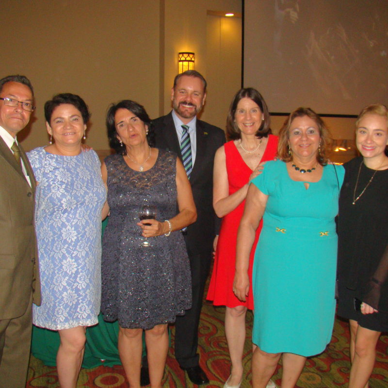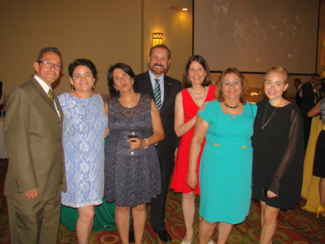 El diplomático acompañado de su esposa y funcionarios de la sede diplomática, recibieron a sus invitados, en un especial salón del Hotel Real InterContinental de Tegucigalpa para compartir con ellos la Fiesta Nacional de Brasil.