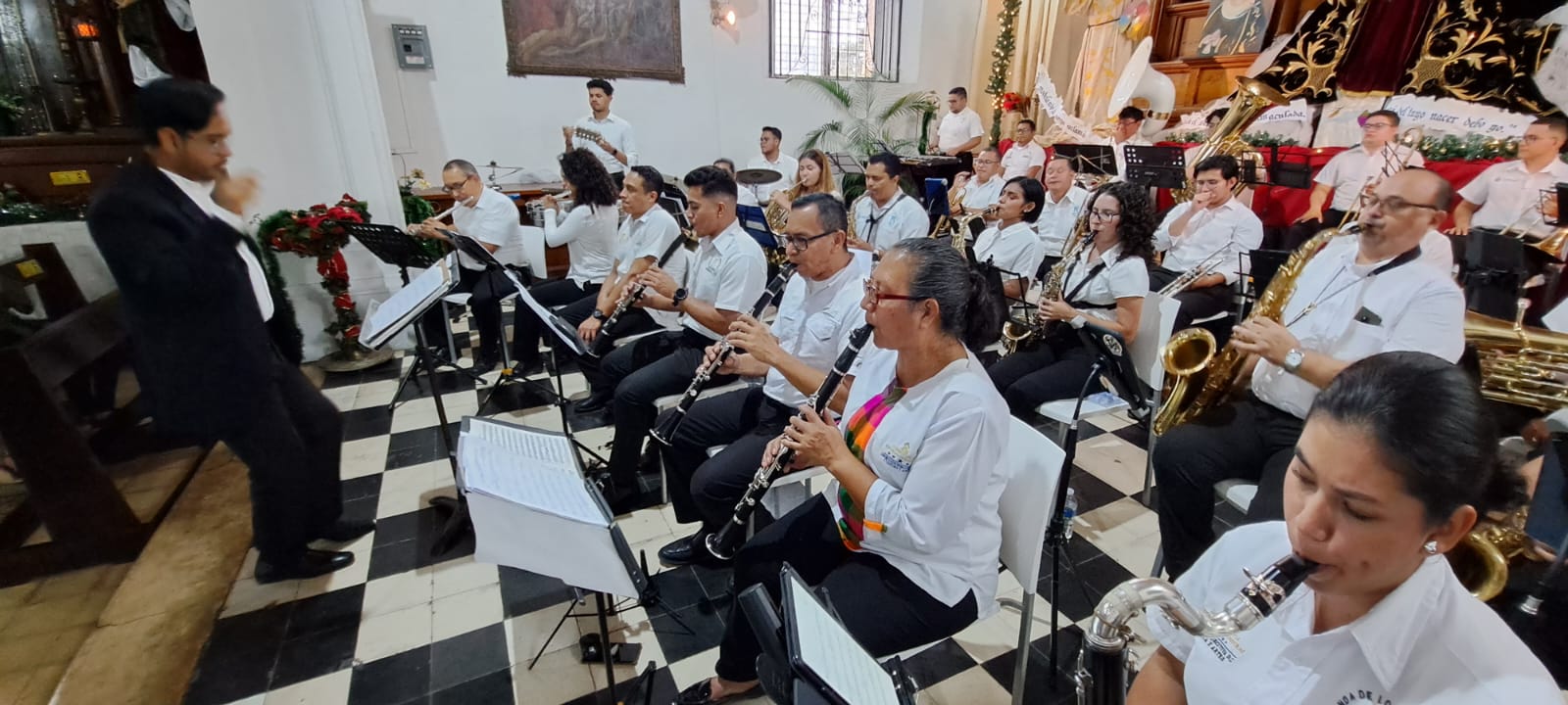 El repertorio, a cargo de la Banda de los Supremos Poderes, constó de once piezas de la autoría de compositores nacionales y extranjeros para el público que abarrotó el inmueble que data de la época de la colonia.