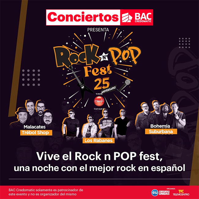 El Festival es un evento organizado por Televicentro y Emisoras Unidas conmemorando el 25 aniversario de la emisora radial Rock and Pop. BAC Credomatic solamente es un presentador de este evento y no un organizador del mismo.
