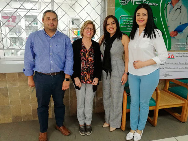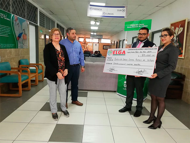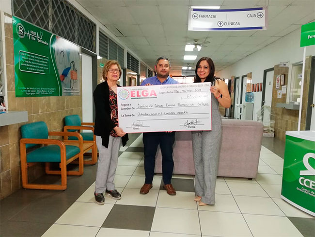 En representación de la Cooperativa Elga, la Licenciada Mitza Hernández, entregó el cheque del donativo en nombre de sus clientes, colaboradores y directivos. Por parte del Centro de Cáncer Emma Romero de Callejas, la Doctora Eda Cálix, Directora Médica y el Licenciado Danilo Suazo, Gerente General recibieron tan importante donación.