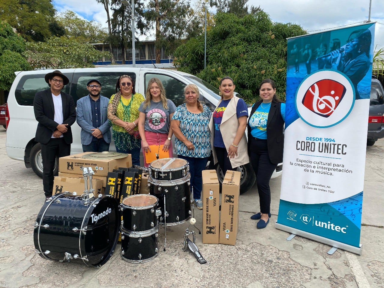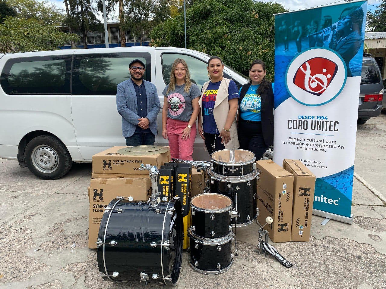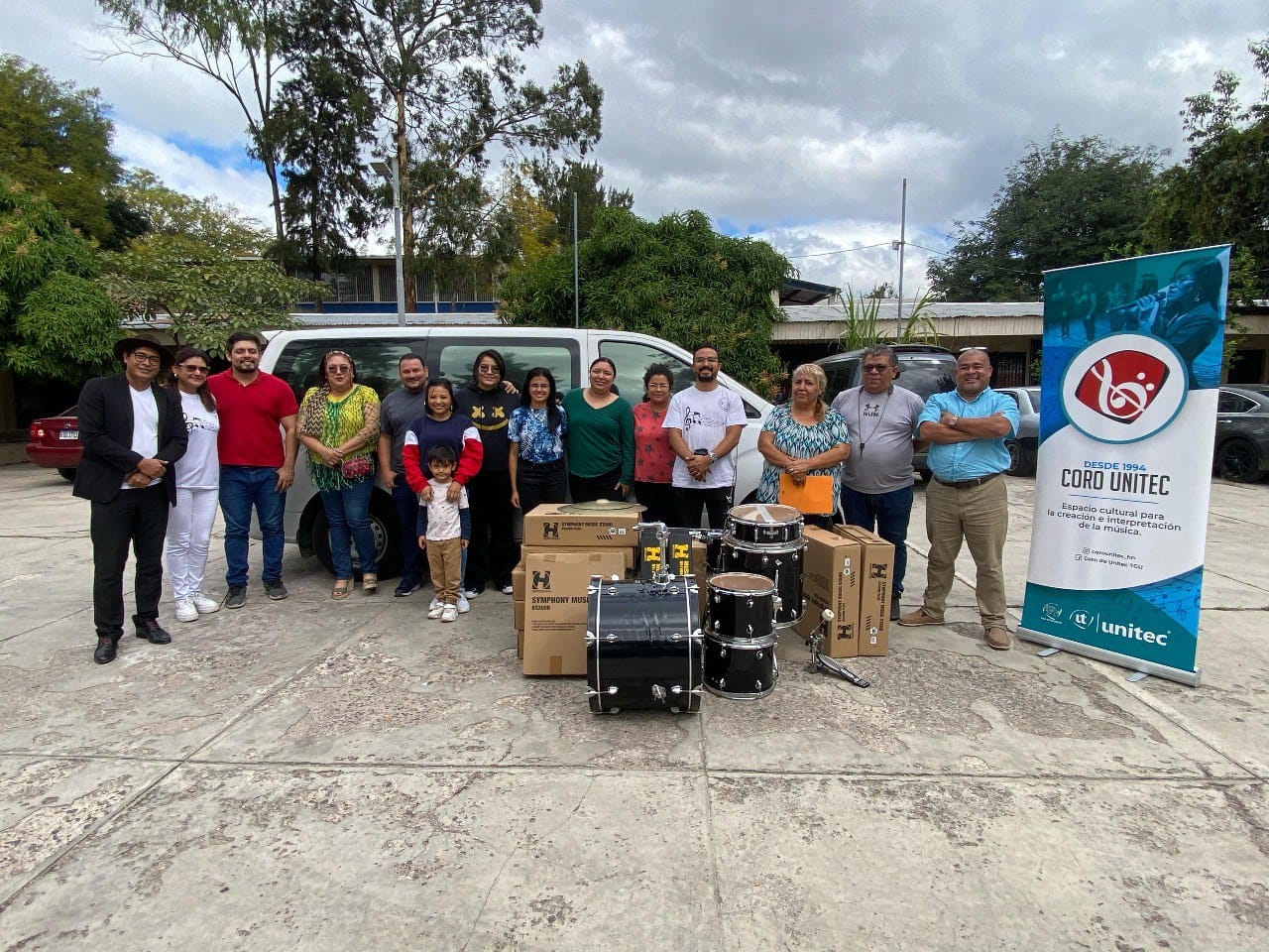 Cabe mencionar que la donación de la batería acústica, los 13 atriles y un parlante fue posible gracias a los fondos recaudados a través de los conciertos que ofrece el Coro de UNITEC.