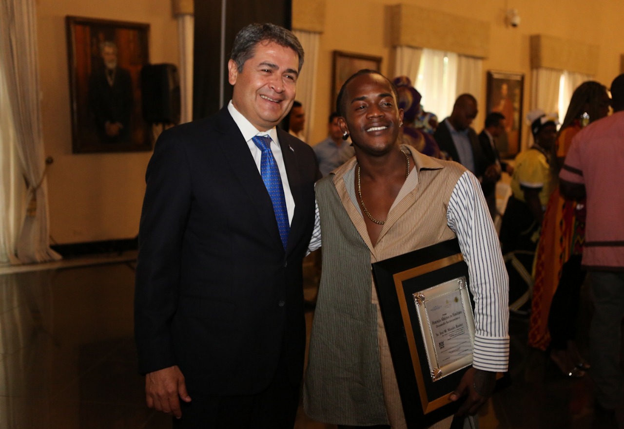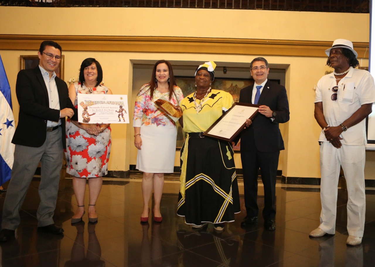 Hernández subrayó que «hoy reconocemos la trayectoria de estos grandes hondureños, así como hace 15 días declaramos el Ballet Folklórico Garífuna como Patrimonio Cultural Vivo de Honduras y por eso agradecemos a la comunidad garífuna por poner en alto el nombre de Honduras».