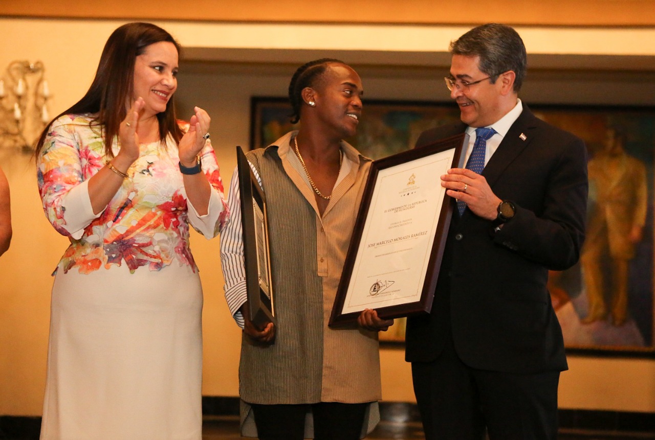 El mandatario contó que hace poco tiempo «me encontré a Menor Menor en el Lago de Yojoa y hoy le ratifico que los hondureños nos sentimos orgullosos de su éxito”.