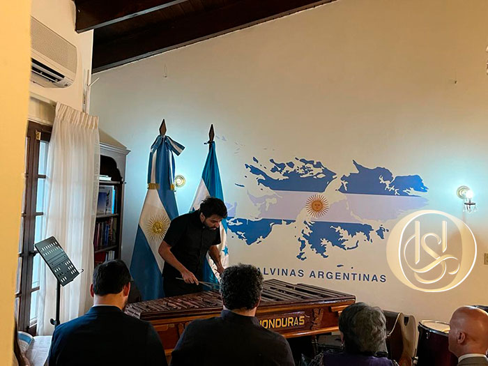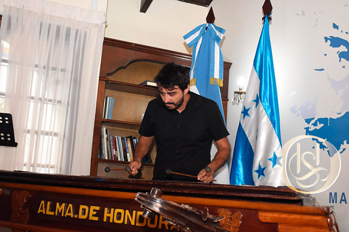Entre aplausos y ovaciones al ritmo de: “Dale play a la esperanza”, “Sopa de caracol”, “El Bananero”, y otras, “Argentina Muna Daragu”, ofreció un concierto de marimba interpretado por el músico argentino Pablo Narvaja y la Marimba Nacional Alma de Honduras