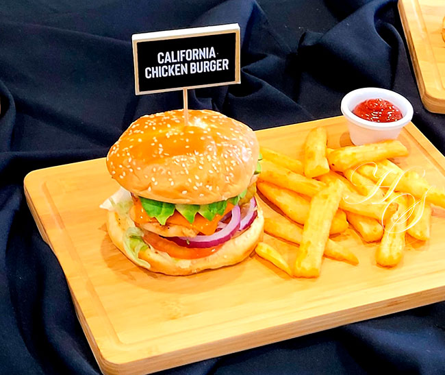 Ahora podrás disfrutar de la California Chicken Burger. Una pechuga de pollo perfectamente sazonada y cocinada a la plancha cubierta de queso cheddar derretido, queso untable de Bluecheese y eneldo, para un toque cremoso. Todo servido en un pan brioche con aguacate, lechuga, tomate, pepinillos y cebollas rojas.