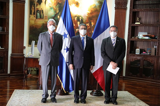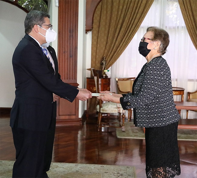 .Diez nuevos embajadores presentaron sus cartas credenciales al presidente de la República, Juan Orlando Hernández, siete de ellos en una ceremonia presencial en la antigua Casa Presidencial y tres de manera virtual.