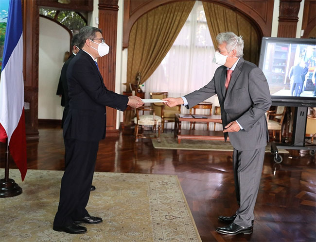 Los nuevos embajadores son Gabor Pinter, Nunciatura Apostólica; Emmanuel Pineda, de Francia; Jaehyun Shim, de Corea del Sur; Delia Chevalier Aguirre de Villamonte, de Panamá; Ana Marina Alvarado de Díaz, de Perú; Yao-Jen Wen, de la República de China (Taiwán), y Jaume Segura, de la Unión Europea.