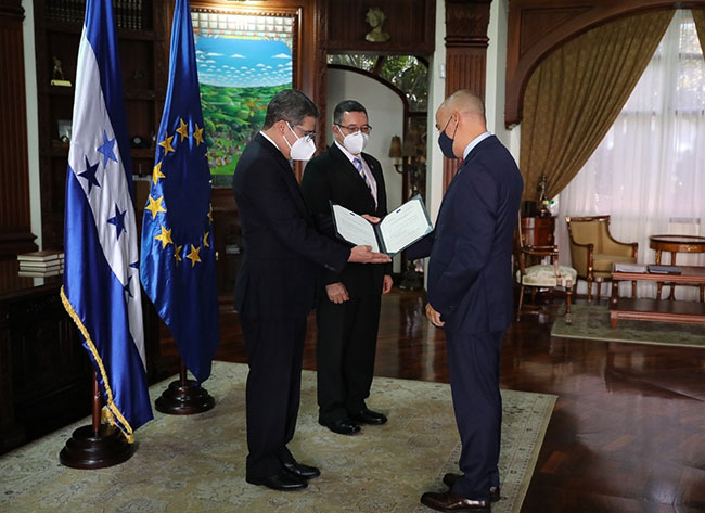 La ceremonia se realizó en el Palacio José Cecilio del Valle, la antigua Casa Presidencial, en presencia del vicecanciller, José Isaías Barahona.
