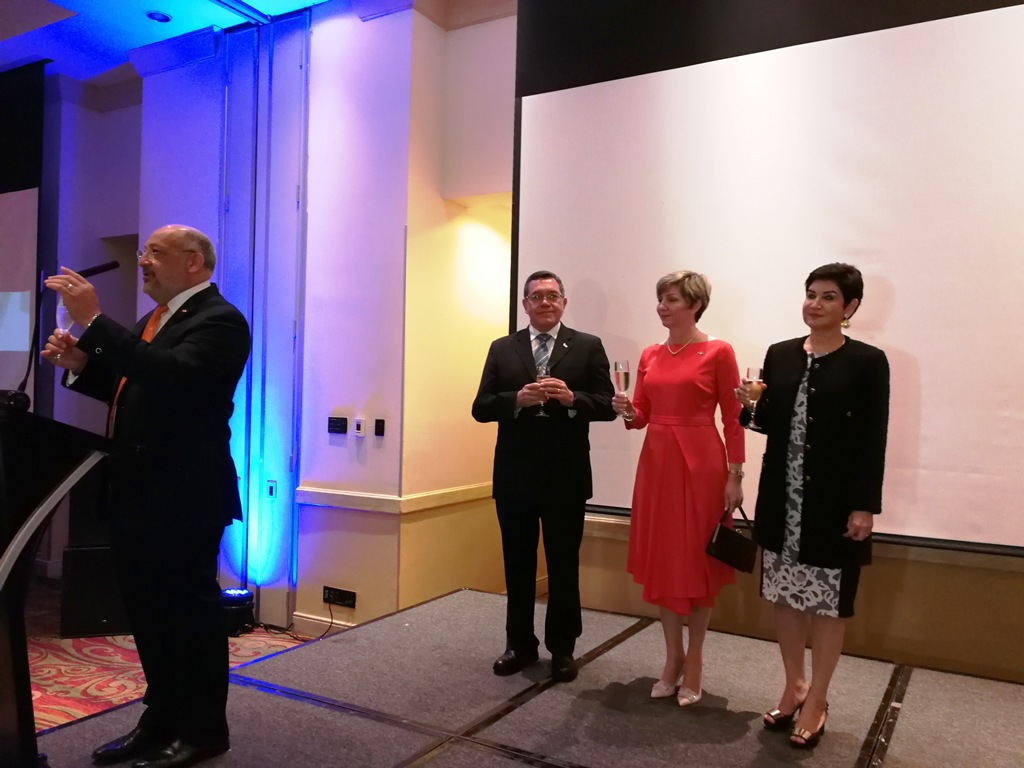 El embajador de la República Dominicana Marino Berigüete y su esposa María Esther Bencosme de Berigüete, junto a los miembros de la sede diplomática fueron los amables anfitriones de la tradicional celebración del 175 aniversario de independencia de este importante país.