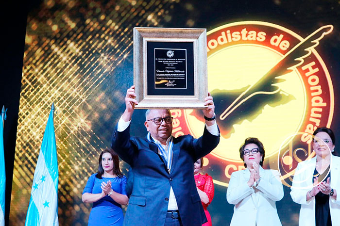 El conocido periodista Eduardo Napoleón Maldonado en solemne ceremonia, recibió el Premio Nacional de Periodismo «Álvaro Contreras»2023-2024, otorgado por el Colegio de Periodistas de Honduras (CPH), por su destacada trayectoria.