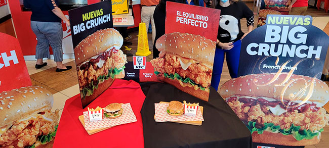 Creamy Spicy Big Crunch: pechuga de pollo extra crispy, servida con una deliciosa salsa cremosa picante, lechuga y queso mozzarella sobre un pan tostado, una hamburguesa con un toque pincantito que será del agrado de muchos. Para los que disfrutan de un sabor suave y dulce pueden disfrutar de la French Onion Big Crunch: pechuga de pollo extra crispy, servida con mayonessa, lechuga, queso mozzarella y cebolla caramelizada sobre un pan tostado. Sin duda alguna estas  deliciosas combinaciones complementan a la perfección el buen sabor y fama mundial con la que cuenta KFC .