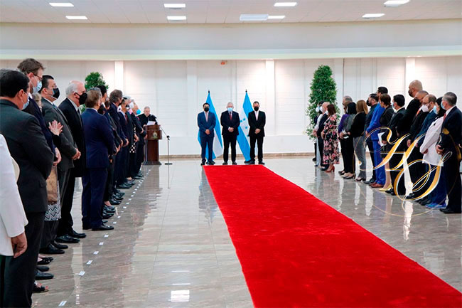 El Secretario de Estado en los Despachos de Relaciones Exteriores y Cooperación Internacional, Eduardo Enrique Reina García, realizó este martes, el saludo protocolario ante el cuerpo diplomático acreditado en Honduras, acompañado de los Subsecretarios, Carlos Antonio García y Gerardo Torres Zelaya.