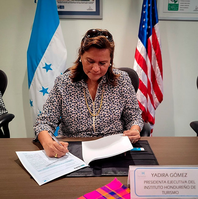 Dicha firma fue entre la ministra de Turismo, Yadira Gómez y la subdirectora de Proyecto Adaptación Climática, Isabel Pérez donde ambas instituciones tienen el interés compartido de impulsar productos turísticos sostenibles vinculados a la conservación, crear nuevas oportunidades laborales que contribuyan a un crecimiento económico sostenible para diferentes destinos turísticos de Honduras y avanzar en los esfuerzos de adaptación y mitigación del cambio climático.