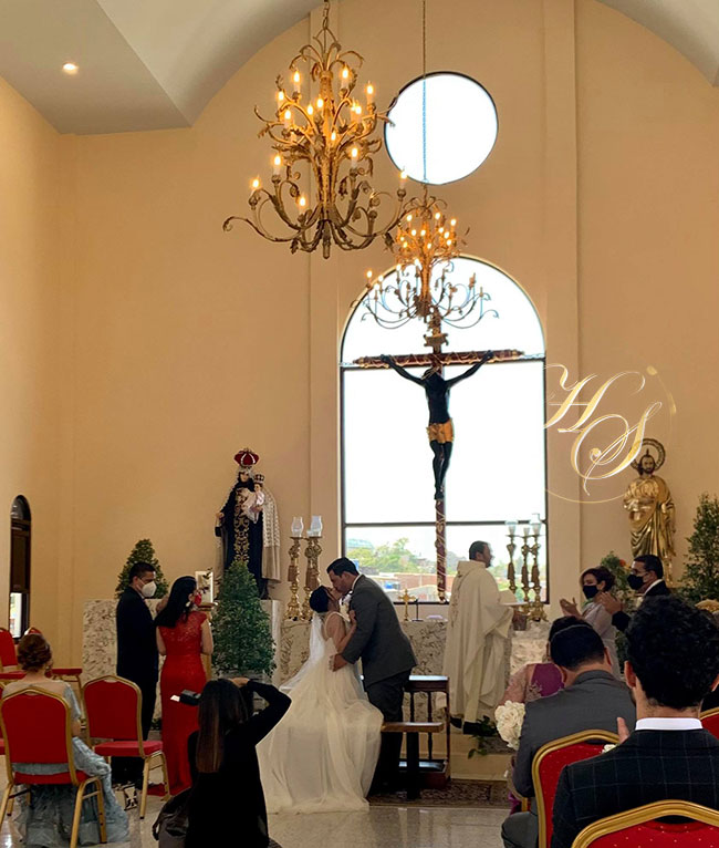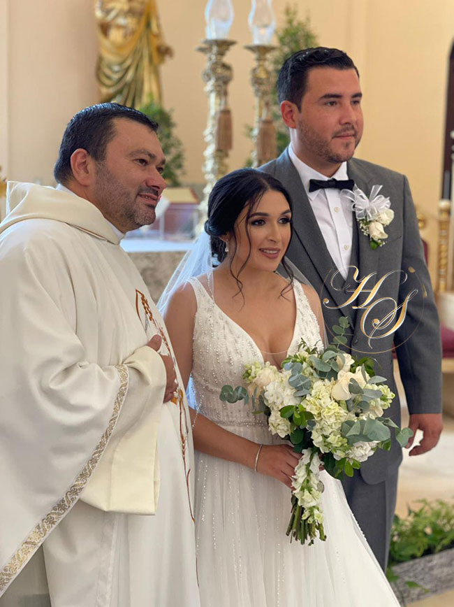 La unión matrimonial fue oficiada por el sacerdote Carlo Magno Núñez, quien les recordó los nuevos compromisos que como esposos adquirieron, como amarse y respetarse el resto de sus vidas teniendo a Dios en su nuevo hogar creado ese día.