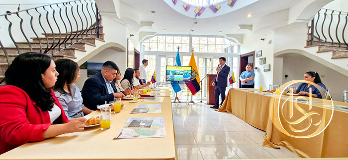 En la reunión el anfitrión habló de las maravillas de las Islas Galápagos, la exquisita gastronomía existente en todo el país, las grandes montañas y ríos, que permiten hacer caminatas y deportes acuáticos.