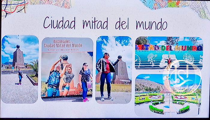 Al final de la reunión, la señora Betty Palencia, gerente de «Águila Tours», quien había hecho un viaje de trabajo al Ecuador, hizo una presentación de su viaje resaltando su experiencia en la ciudad «Mitad del Mundo» y en la ciudad de «Baños de Agua Santa».