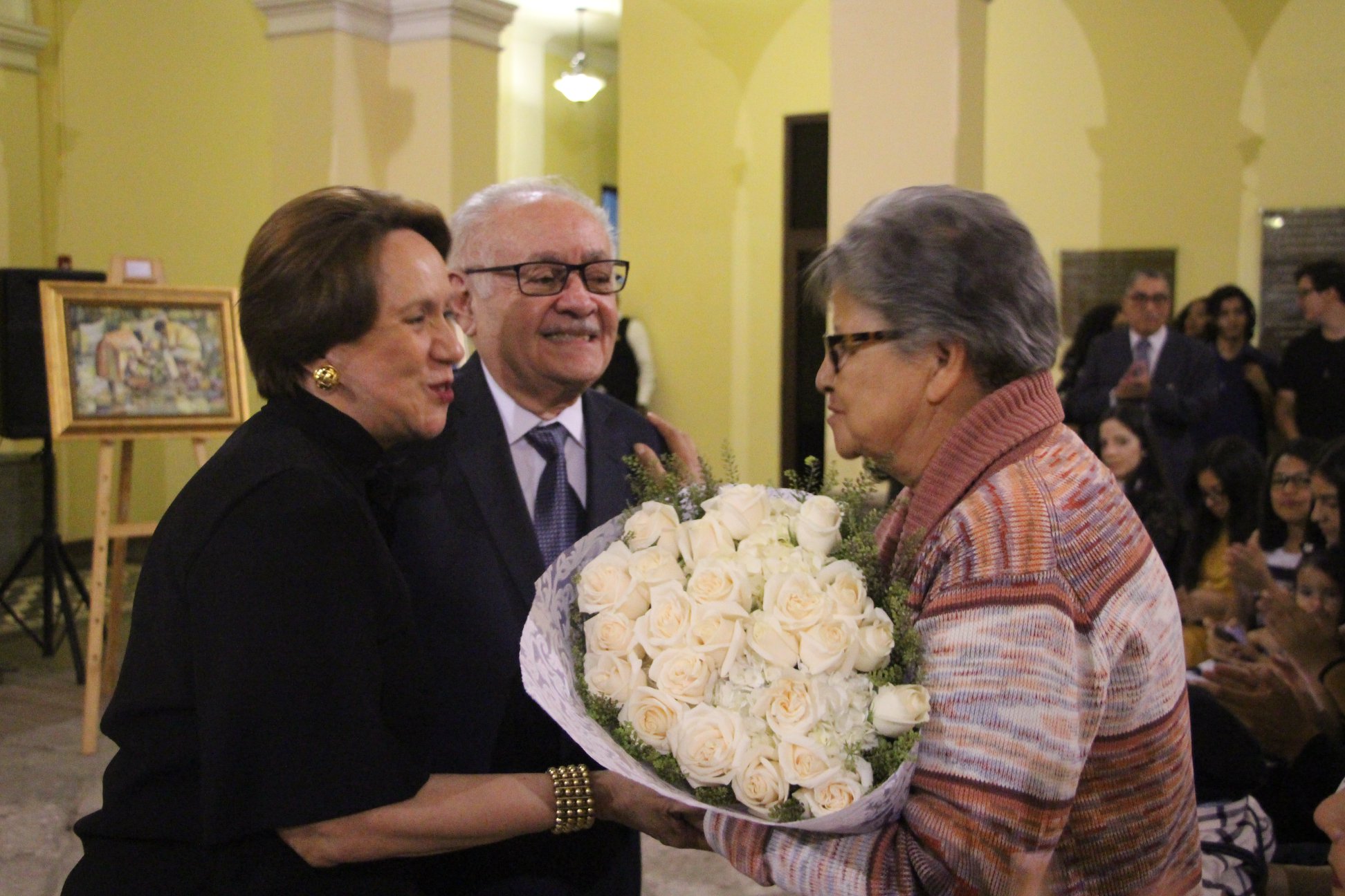 Durante esta exposición se entregó una ofrenda floral a la señora Justa de Gómez, viuda del pintor, quien agradeció a los organizadores por “mantener viva la presencia de mi Benigno”.