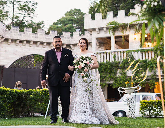 La novia, que lució que una bella creación del diseñador Antonio Sarmiento, la misma entro al Castillo del brazo de su querido hermano Ever Ulloa junto al cortejo de honor.