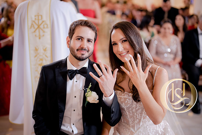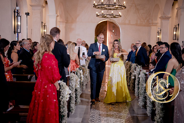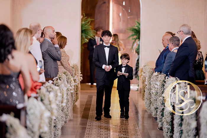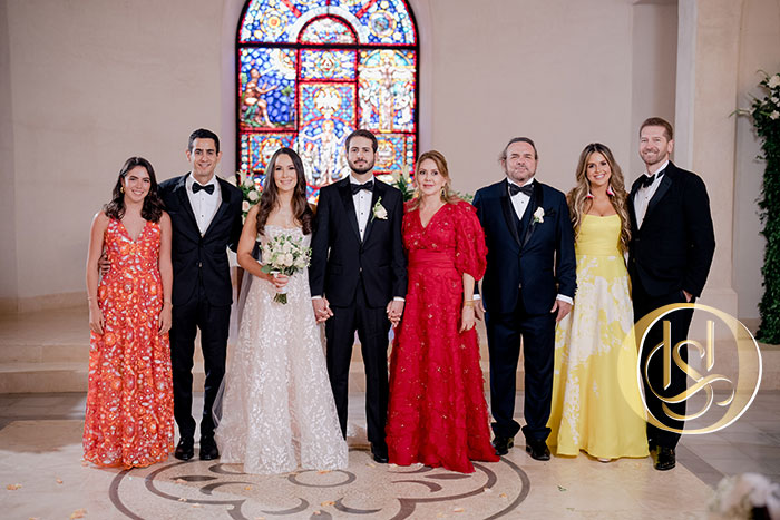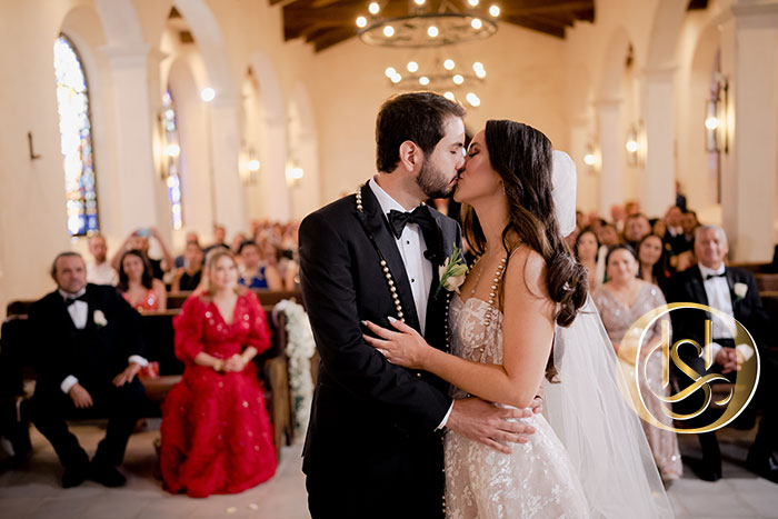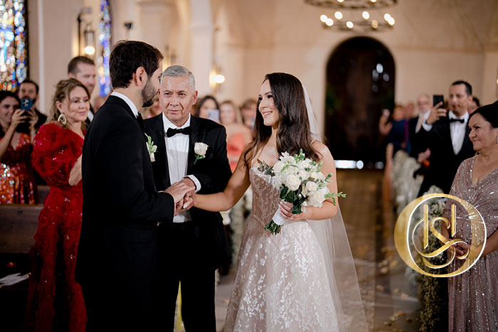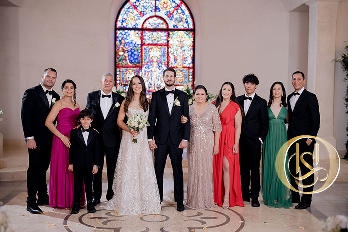 En la ceremonia se oficio en la Capilla Santa Ana dirigida por el Padre Hector Treminio y donde fueron padrinos de la boda Oscar Merlo y Flavia Chamorro.
