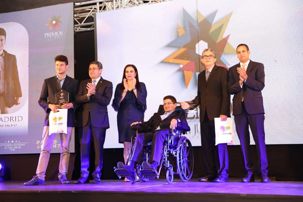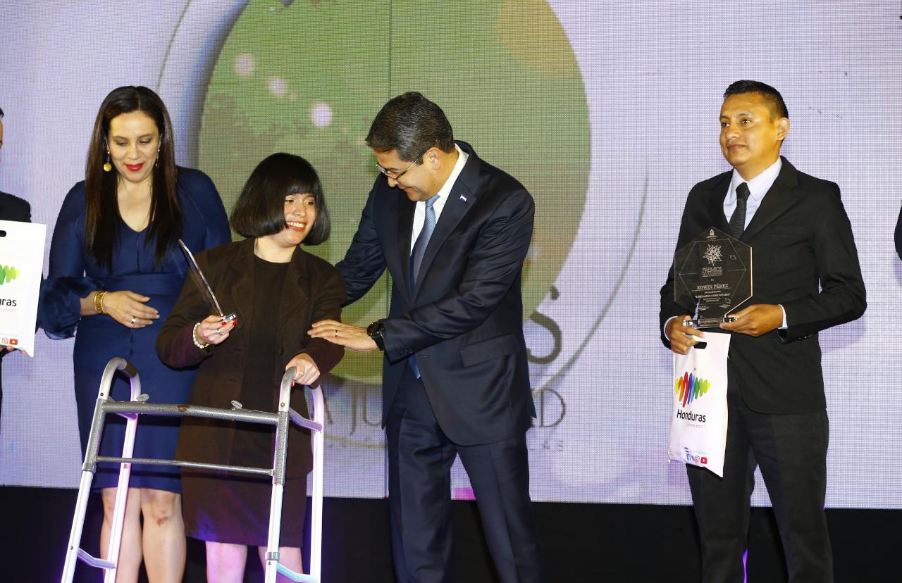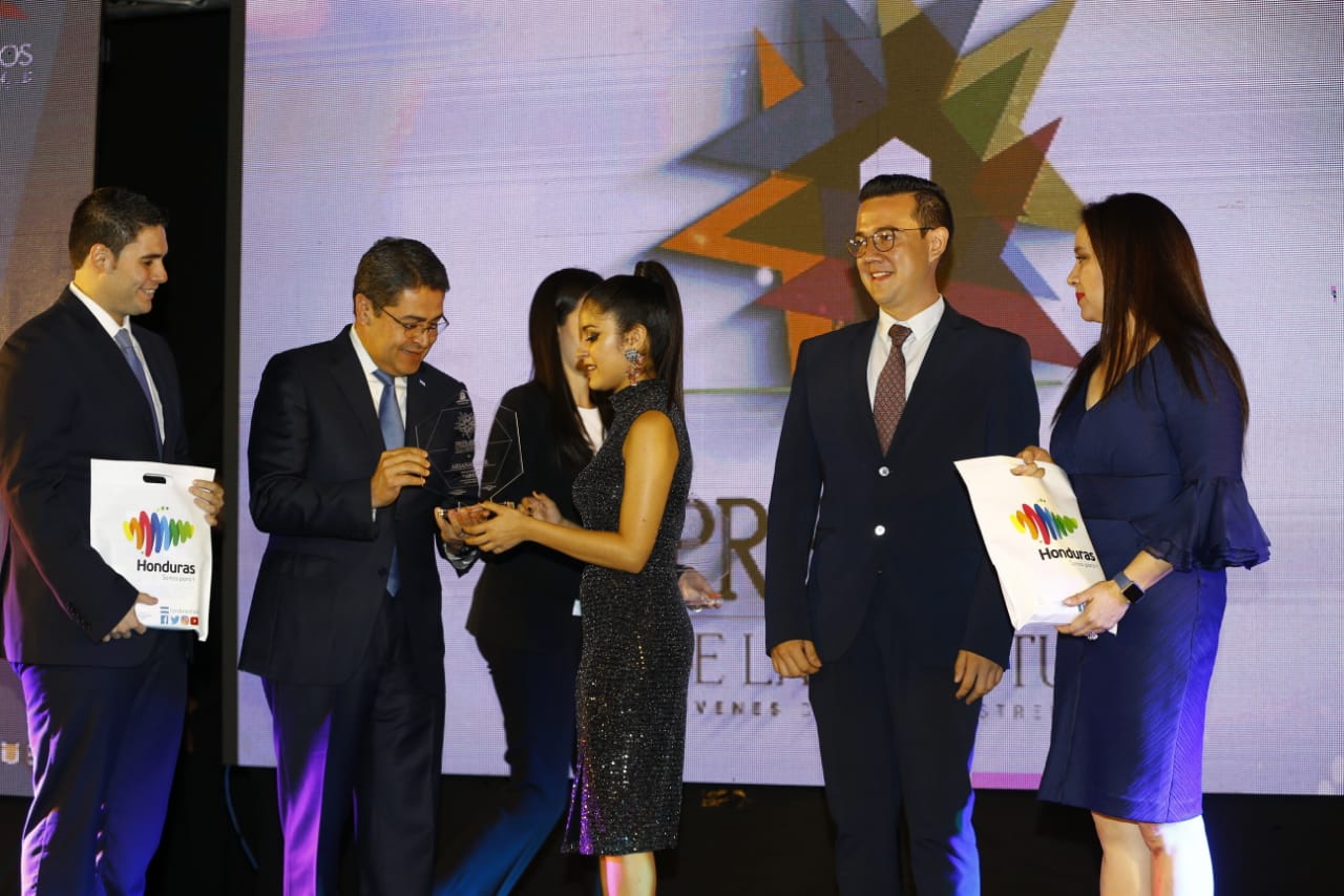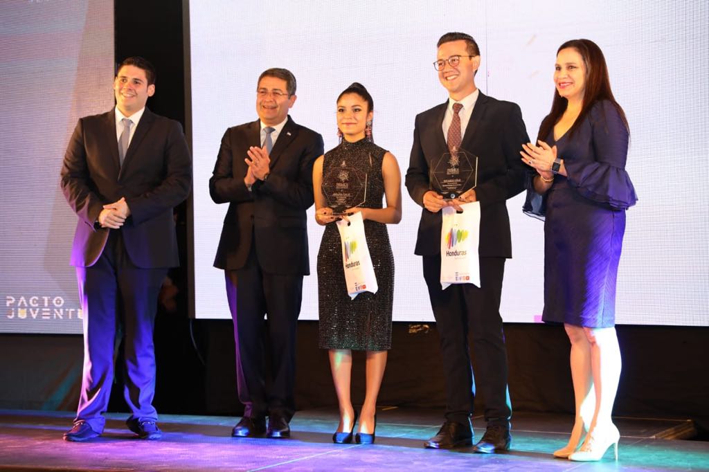 El presidente Juan Orlando Hernández entregó en compañía de la Primera Dama, Ana García, los Premios Juventud en su cuarta edición a varios hondureños en las ramas de Ciencia, Tecnología, Arte, Cultura, Emprendimientos, entre otros.