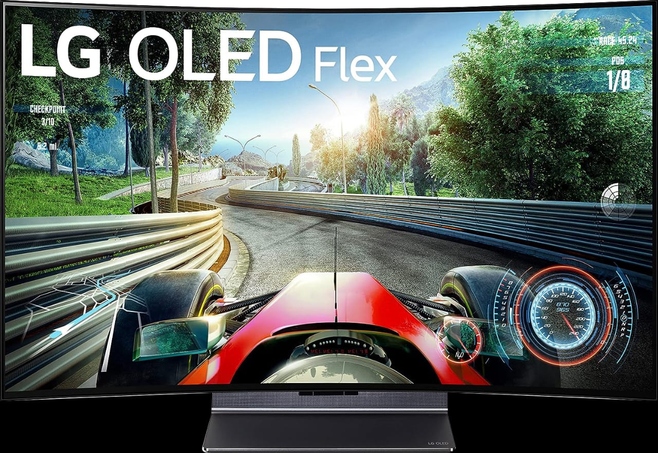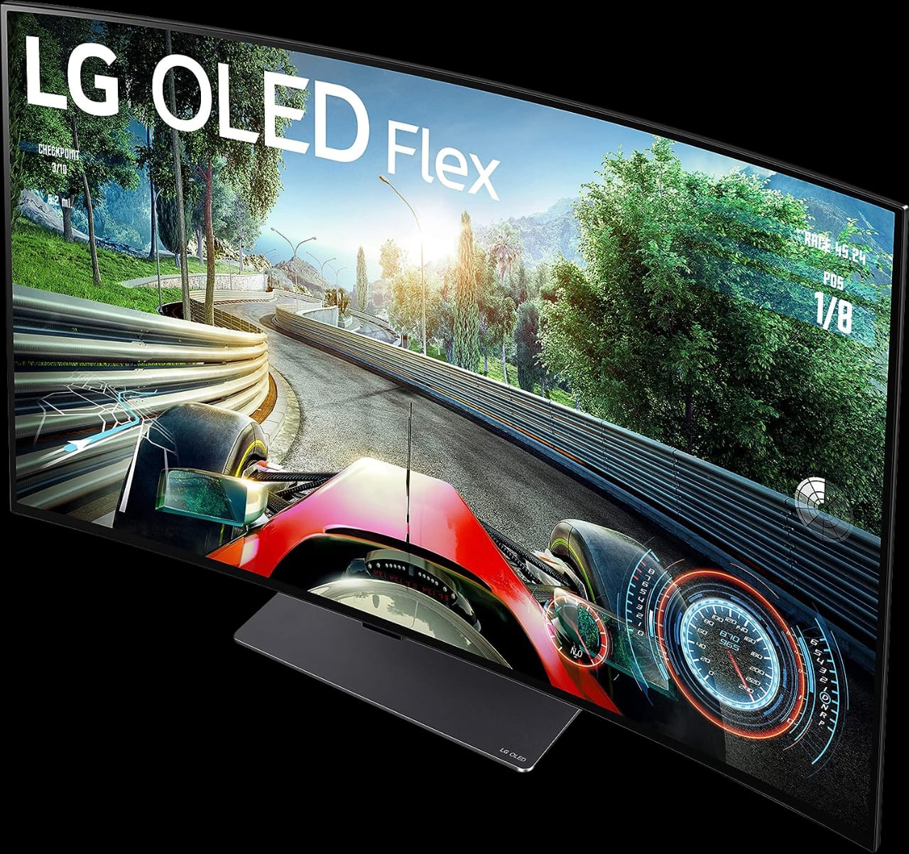 2. LG OLED Flex LX3 de 42″: Este televisor de ensueño para gamers ofrece una experiencia de entretenimiento versátil. Se puede cambiar de una pantalla plana a una espectacular pantalla curva de hasta 900R con solo presionar un botón en el control remoto. Además, cuenta con tiempo de respuesta ultrarrápido de 0.1 ms para una experiencia de juego en tiempo real, tecnología SAR para reducir los reflejos de la luz ambiente y sombras en la pantalla, píxeles autoiluminados de LG OLED evo para un contraste inigualable y colores vibrantes y ajustes personalizables de altura e inclinación para la visualización más inmersiva.