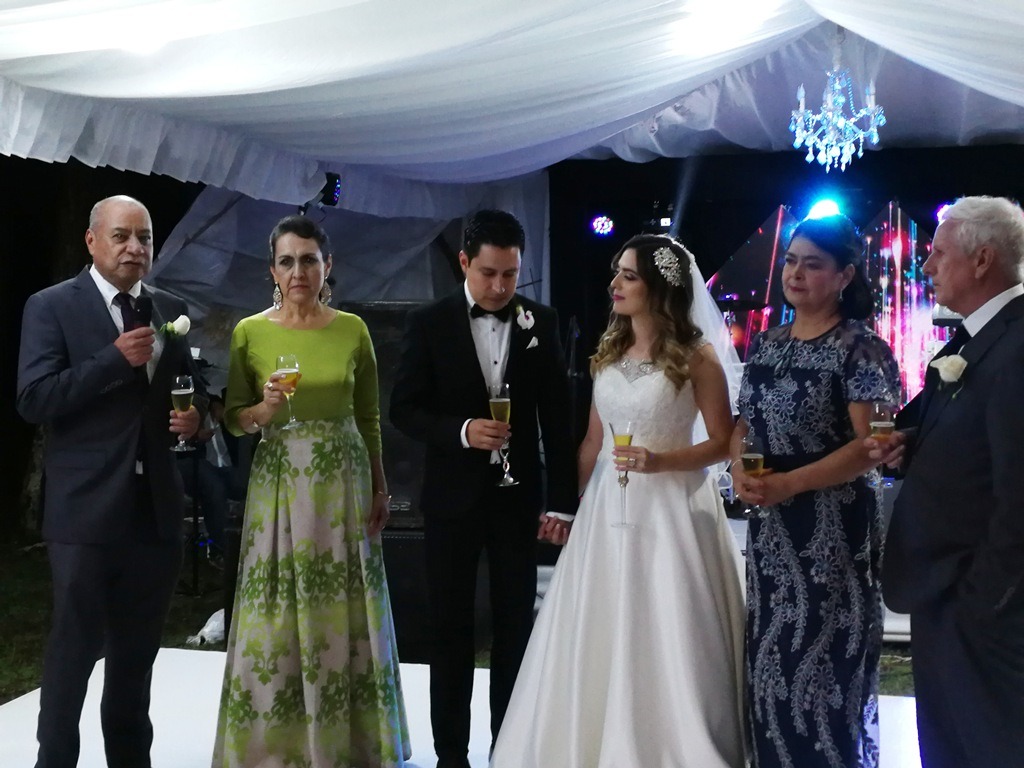 La unión matrimonial estuvo a cargo del pastor Saúl Medina de la iglesia Centro Cristiano Internacional CCI, en una ceremonia llena de romanticismo y música de violines interpretada por el cantante Carlos guerra.