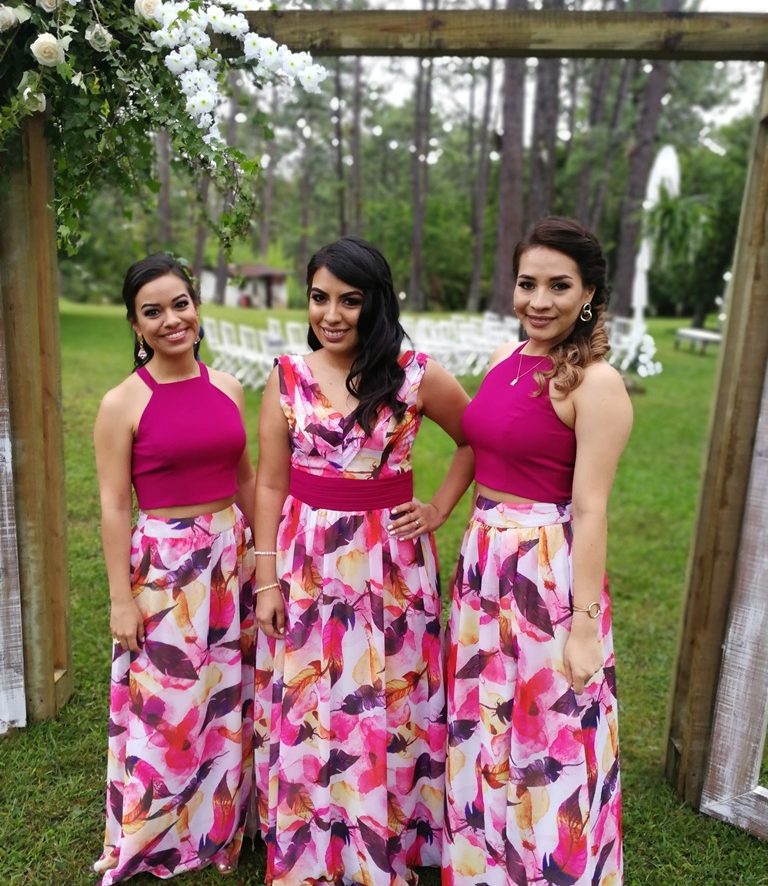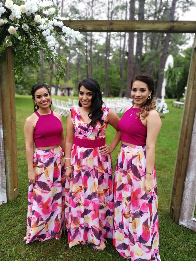 -La decoración fue muy romántica en tonos rosas, blanco y verde muy adecuada para una boda en el bosque, realizada por la artista Elizabeth Rodríguez de “CATTLEYAS flowers”, quien utilizo orquídeas, helechos, rosas, claveles y campanitas irlandesas.