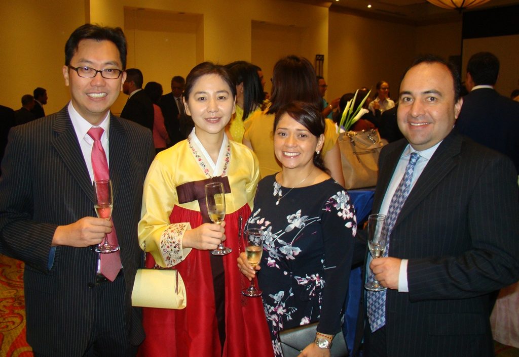 Donde funcionarios, diplomáticos, empresarios y miembros de la comunidad coreana residida en el país, fueron partícipe de la recepción que inició, con la entonación de los himnos nacionales de ambas naciones.