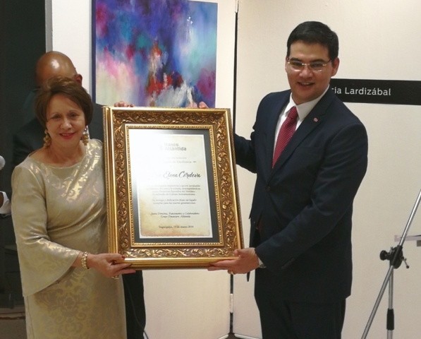 En el salón cultural del Banco Atlántida representantes del Instituto Hondureño de Cultura Interamericana, IHCI, rindió tributo a su directora ejecutiva saliente, Rosario Elena Córdova, quien concluye su labor al frente de la organización después de 25 años de faena promoviendo el arte y la educación.