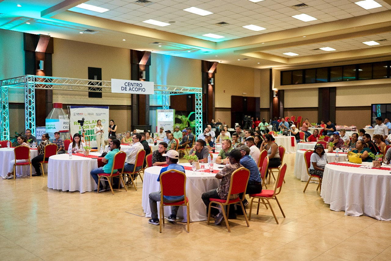 San Pedro Sula.- En el marco del Día Mundial del Reciclador, La Agencia de los Estados Unidos para el Desarrollo Internacional (USAID) y Fundación Cervecería Hondureña a través del proyecto conjunto “Reciclar para Crecer”, realizaron un importante evento de reconocimiento y celebración con 120 recicladores en la ciudad de San Pedro Sula, participando la Municipalidad de San Pedro Sula y las empresas recicladoras INVEMA y RECYPROCO para desarrollar simultáneamente un Mega Reciclatón en las instalaciones de la cámara de comercio.
