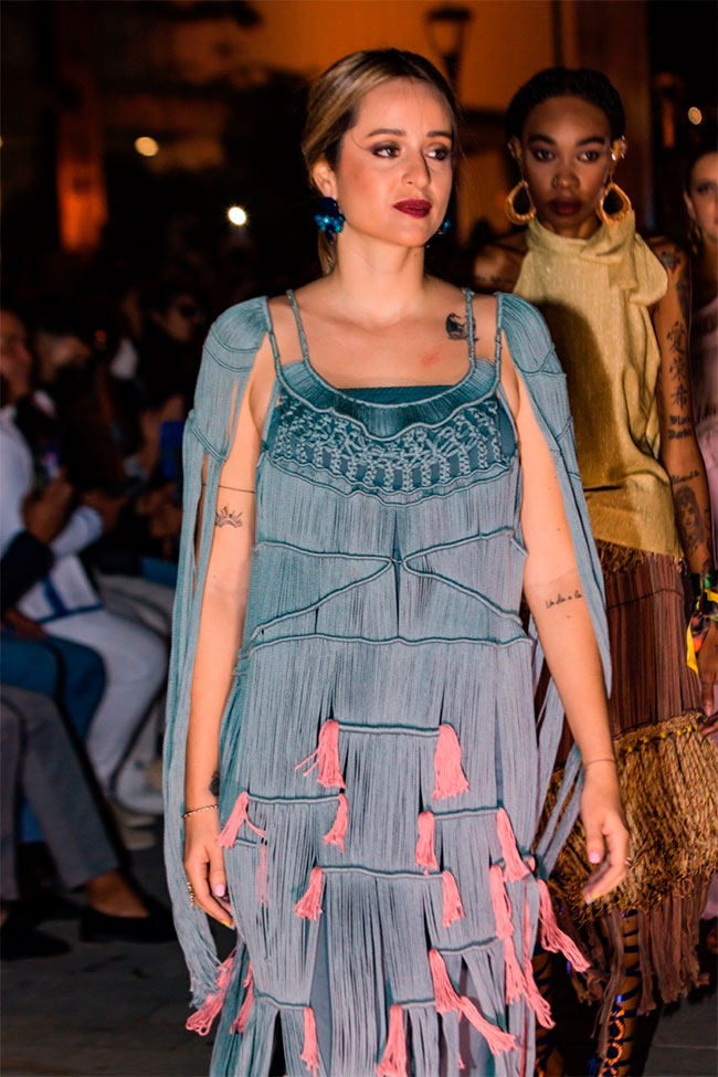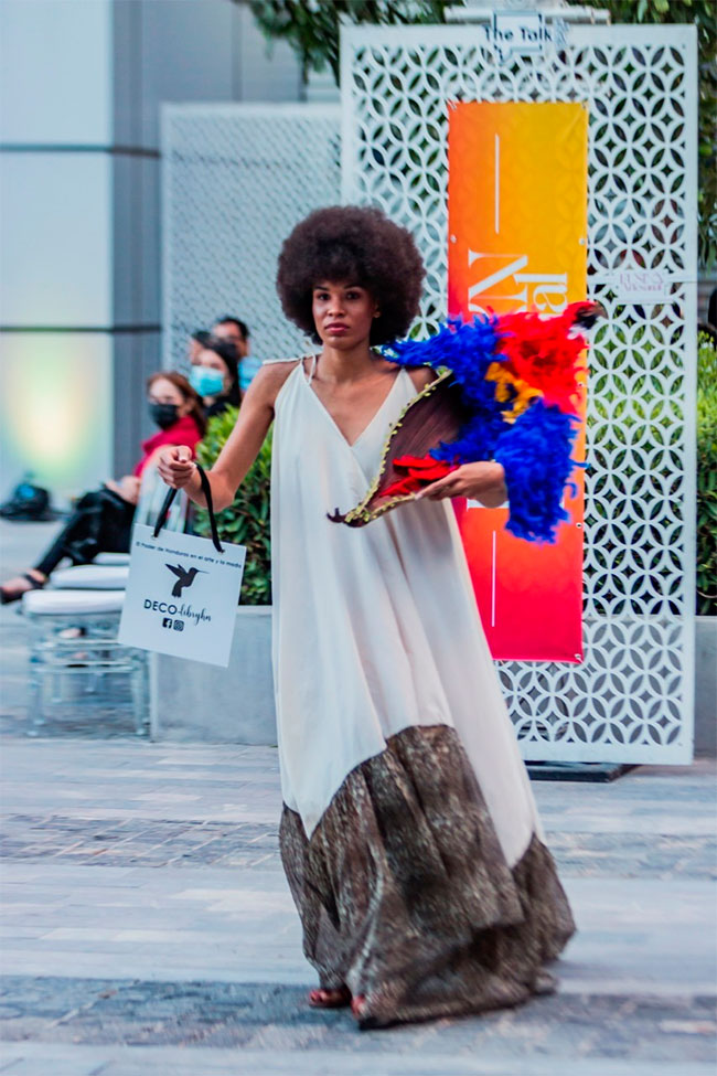 La segunda pasarela fue presentada por Deco-libryhn de la mano de su directora creativa, Alejandra Macía, en fusión con artesanas de Santa Bárbara.